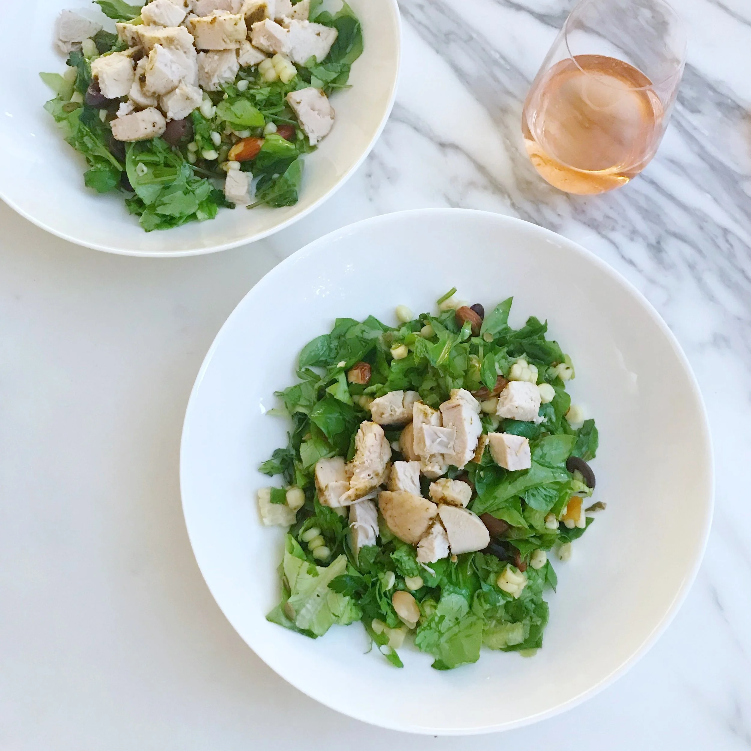 The summer is here and I can’t stop making and eating chicken salad! Chicken breast sprinkled with poultry seasoning and curry spices, then drizzled with olive oil and baked at 380oF for 25 mins. Meanwhile, I tear up butterhead and iceberg lettuce, arugula, mint, parsley, and cilantro, chop up peppers and olives, and mix together with olive oil or salad dressing - Brianna’s is my favorite. Then slice the chicken breast, cool, and pop on top of the salad. Cannot eat this enough.. and heads up to anyone visiting me, we’ll be having this for lunch or dinner too. P.S. It goes very well with a glass of Out East rosé!